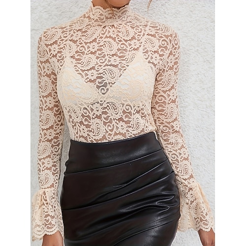 Per donna Camicia Blusa Top Eleganti Semplice Elegante Vintage Tropicale Manica Lunga Collo Alto Top Regolari Lavoro Quotidiano Ferie Patchwork Bottoni Nero Bianco Rosa Rosso Verde Primavera Autunno