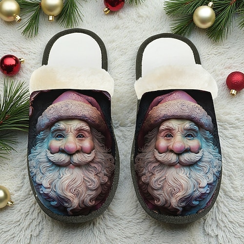 pantofole vintage da uomo a forma di Babbo Natale: calde scarpe da interno foderate in peluche con classica stampa natalizia, comode calzature invernali per la casa e regali per le feste