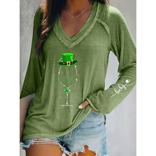 Maglietta da donna per il giorno di San Patrizio grafica trifoglio libellula vintage elegante classico manica corta colletto a V tops regolari stampa quotidiana blu nero verde grigio estate primavera