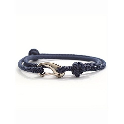 Bracciale da uomo regolabile in corda con chiusura a gancio in metallo, accessorio di moda per regali di Natale, cinturino casual in lega e poliestere per le feste e l'uso quotidiano