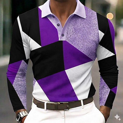 Per uomo Blocco di colori Polo Manica Lunga Magliette polo Camicie con Colletto Business Casual Athleisure Abbigliamento quotidiano Stampa 3D Primavera Autunno Blu Viola Marrone