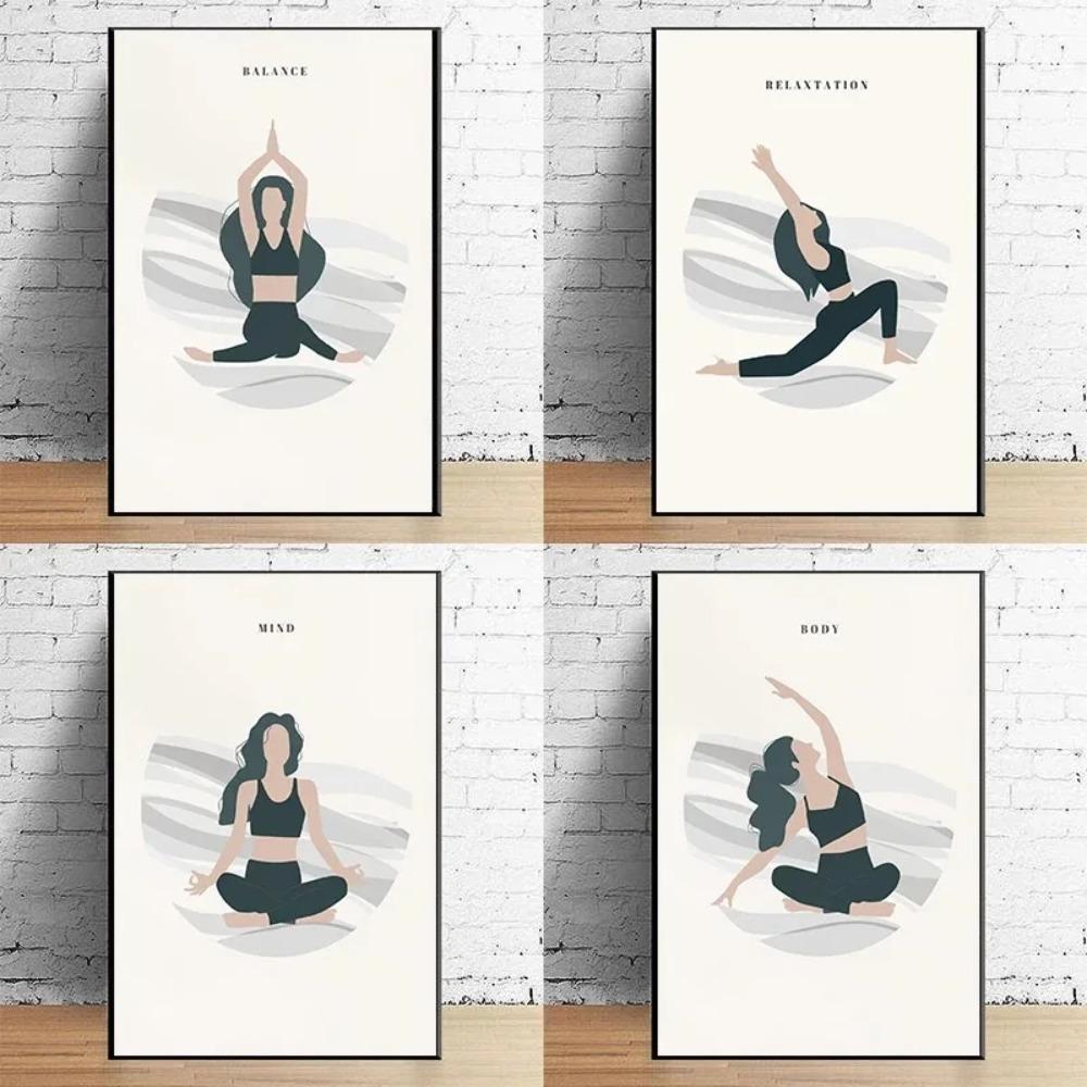 Yoga Liebhaber Posen Verschiedene Professionelle Bewegungen Kaffee Katze Poster Druck Wandkunst Bilder Leinwand Malerei Zimmer Heimdekor