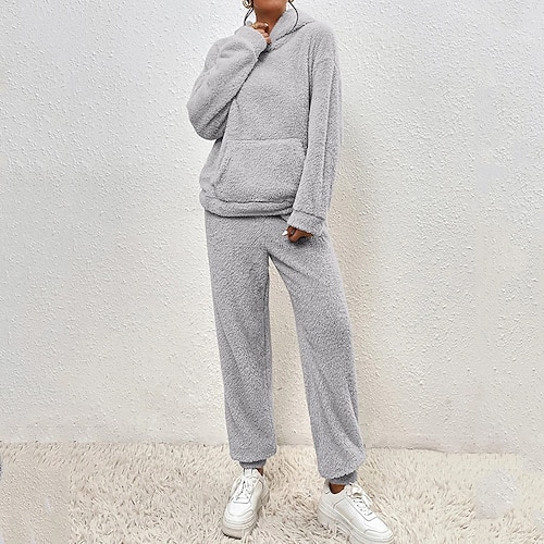 Per donna Tuta da 2 pezzi Felpa con cappuccio Lounge Set di tute da ginnastica Tinta unita Completo Abbigliamento Autunno Inverno Nero Bianco Palestra All'aperto Corsa Manica Lunga Sport