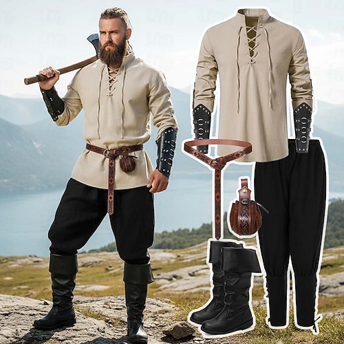 Medievale Rinascimento 17° secolo Lunghezza media A stivale Costume di fantasia Pantaloni da pirata Pirata Guerriero Vichingo Coulisse Tinta unita Costume Per uomo Vichingo Costumi da pirata