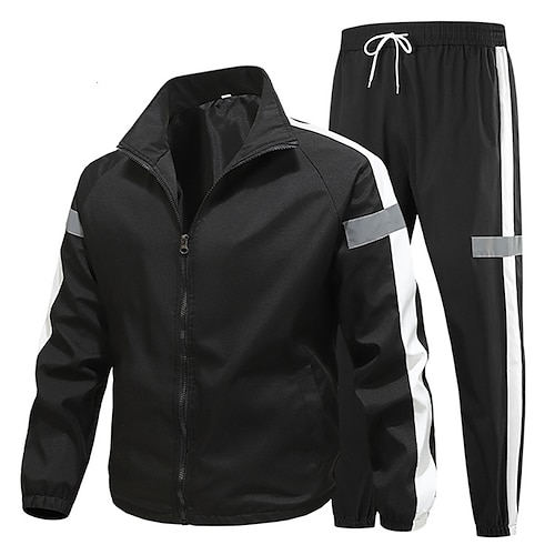 Per uomo Tuta da 2 pezzi Set di tute da ginnastica Abbigliamento sportivo Con zip Striscia riflettente Tinta unita Completo Abbigliamento Primavera Nero Bianco Palestra Allenamento Corsa Vita Alta