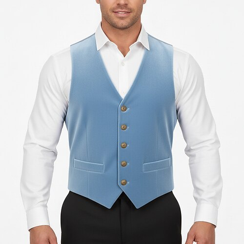 Gilet casual da uomo con revers a V, nero bordeaux, formale, tinta unita, vestibilità su misura