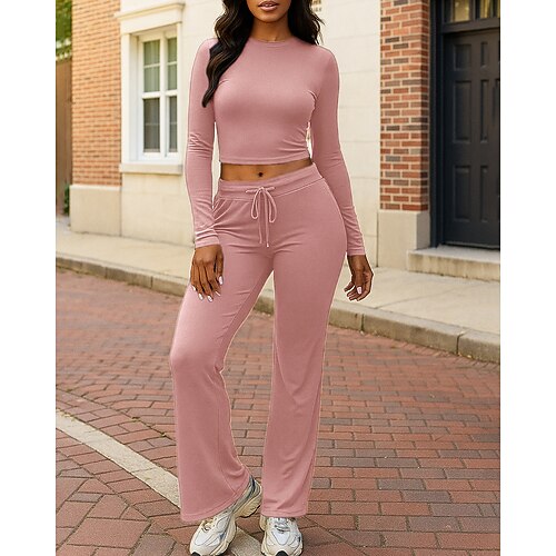 Per donna Set di tute e pullover Tuta da 2 pezzi Abiti da salotto Coulisse Tinta unita Completo Abbigliamento Autunno Rosa Chiaro Rosa Escursionismo Lavoro All'aperto Leggero Manica Lunga Sport