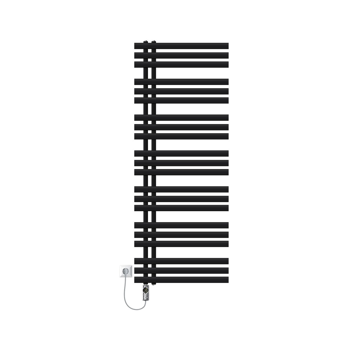 LuxeBath Elektro Badheizkörper Iron EM 600x1600 mm Schwarz matt, Heizstab 900W Chrom, Digitalthermostat