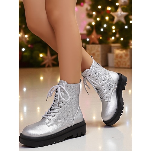 stivali da combattimento con glitter rossi da donna - stivaletti allacciati scintillanti per le feste da donna - perfetti per Natale, feste invernali e gite festive
