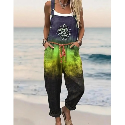 Per donna Tuta Attivo Floreale Senza Maniche Harem Girocollo Tasca Stampato Vacanza Casa Vestibilità comoda Blu Rosso Arancione Estate