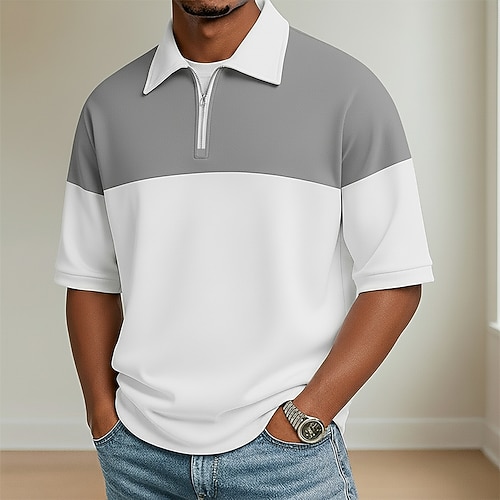 Per uomo Polo con zip Maglia da golf Casuale Ferie Bavero Zip a un quarto Manica Corta Moda Essenziale Semplice Blocco di colore Zip a un quarto Estate Primavera Primavera Estate Vestibilit