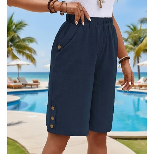 Per donna Chinos Shorts Vacanza Essenziale Lunghezza al ginocchio Vita Alta Elasticizzato Nero Bianco Cachi Estate Primavera Vestibilità regolare