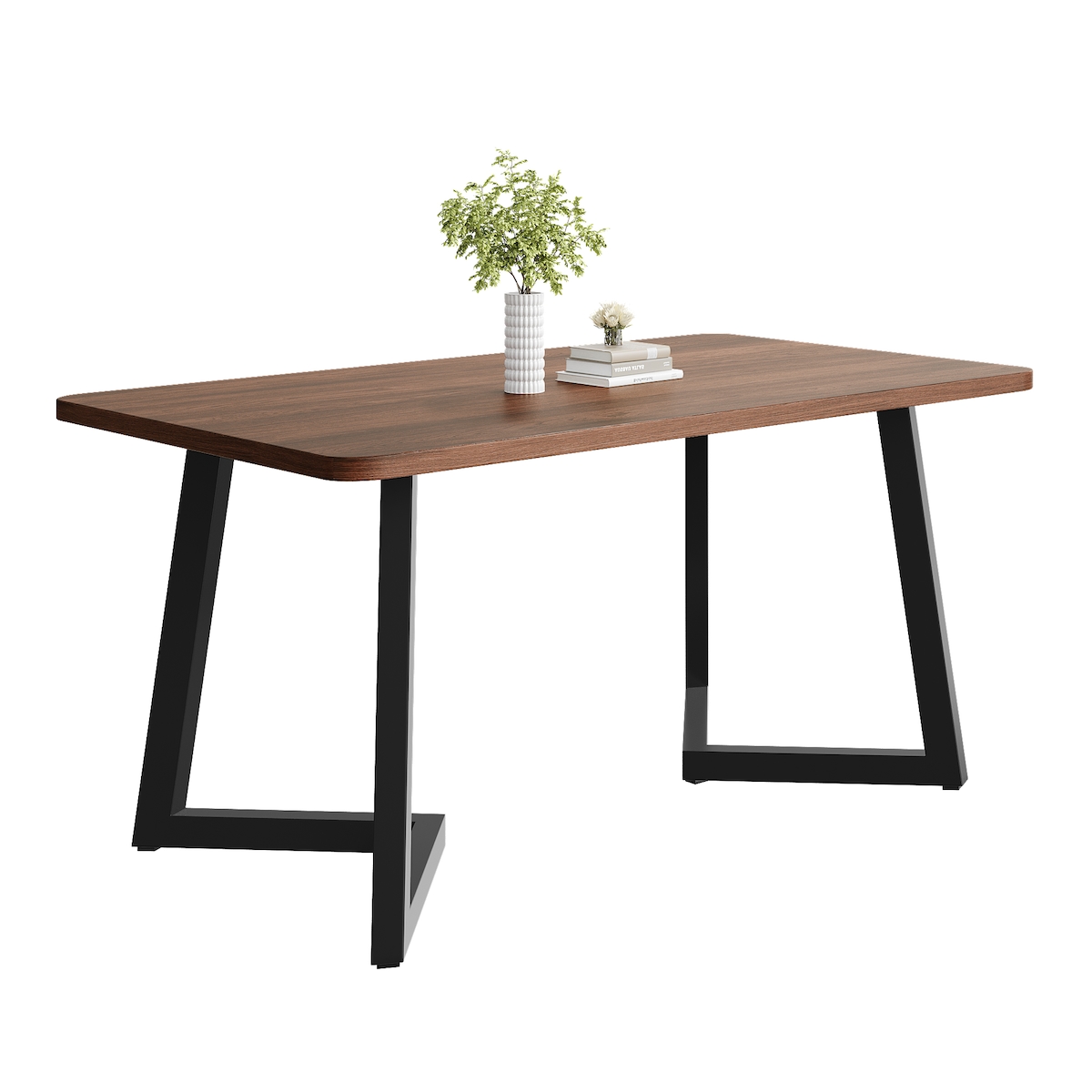MODFU Esstisch rechteckig 117x68x75 cm Walnuss+Schwarz mit MDF Tischplatte in Holzmaserung und Metallgestell für Küche Esszimmer Wohnzimmer