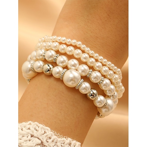set di braccialetti da donna con perle finte, elegante design in argento e perle, vari stili per matrimoni, feste, eventi formali e accessori da sposa