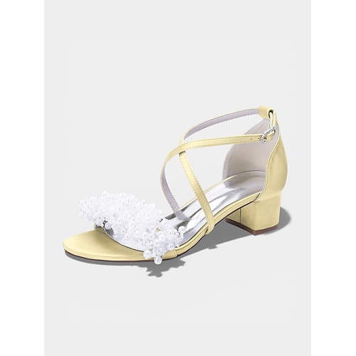sandali da donna con tacco a blocco color avorio e perle: eleganti scarpe da sposa per matrimoni in città moderne