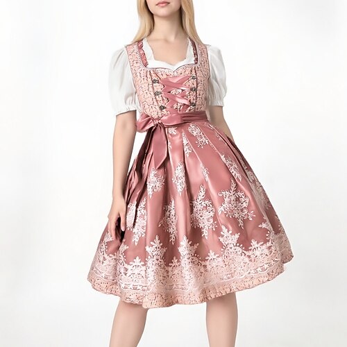 Oktoberfest Dirndl Abiti tradizionali Blusa Dirndl Bavarese Cameriera Tedesco Monaco di Baviera Prati Per donna Panno in stile tradizionale Vestito Grembiule