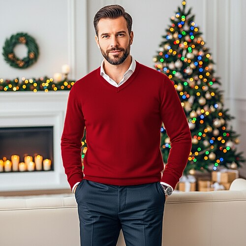 Per uomo Felpa Maglione di lana Maglione A coste Maglia Corto Lavorato a maglia Tinta unica A V Tenere al caldo Contemporaneo moderno Ufficio Da tutti i giorni Abbigliamento Autunno inverno Cammello