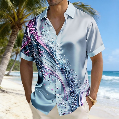 Per uomo Geometrico Onde Arte astratta Camicia Camicia in raso Camicia elegante Manica Corta Moda Casual Quotidiano Vacanza Estate Primavera Collo ripiegato Camicie con Colletto Stampa 3D Camicie con