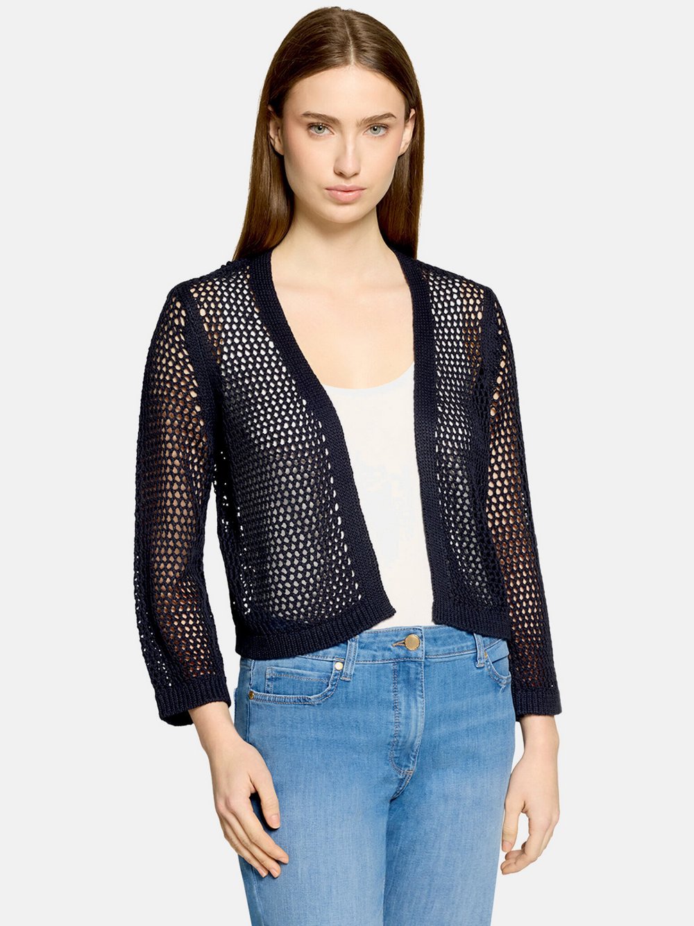 Strickpullover BETTY BARCLAY "Betty Barclay Strickpullover langarm", Damen, Gr. 42, blau (patch dunkelblau, nature), Strick, Obermaterial: 50% Viskose, 27% Polyamid, 23% Polyester., klassisch, gerade normal, U-Boot-Ausschnitt, Langarm, Pullover,...