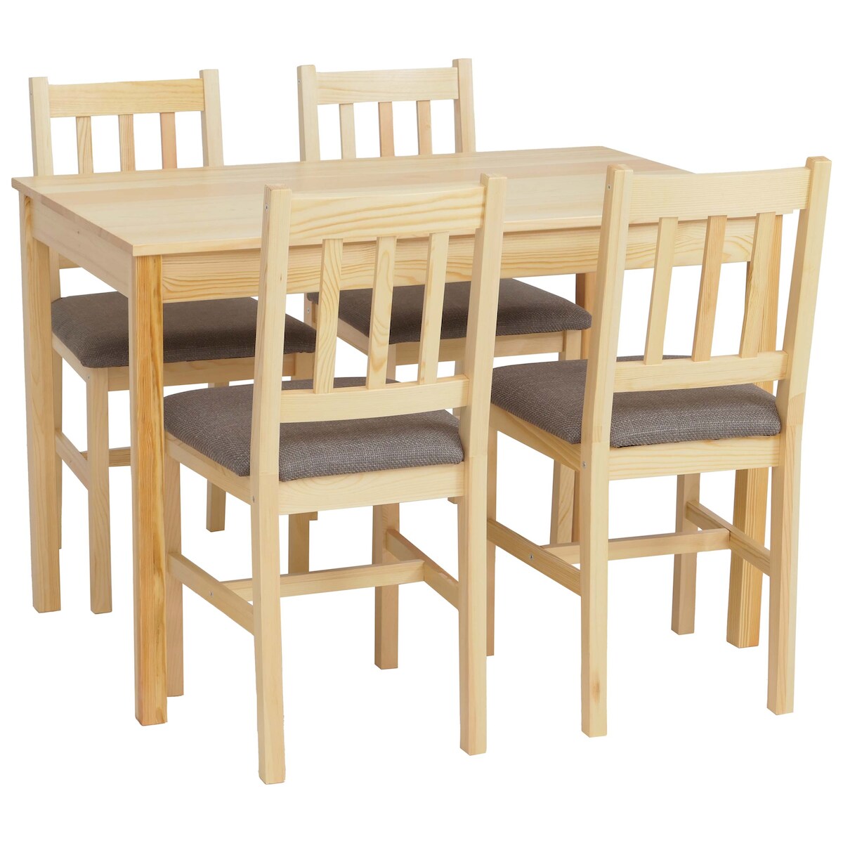 Mendler Esszimmer-Set HWC-F77, Sitzgruppe Esszimmergruppe, Massiv-Holz Kiefer Stoff Landhaus 110cm ~ natur Polster grau