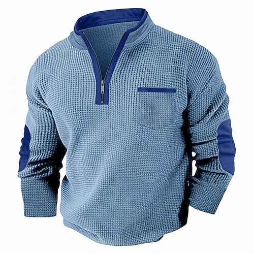 Per uomo Maglietta Waffle Maglietta Maglia Henley a nido d'ape Manica Lunga Mezza zip Autunno Autunno Inverno Tinta unica Patchwork Tradizionale / Vintage Casual Patchwork Blocco di colore Casuale