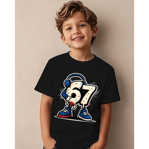 Cotone Bambini Ragazzi Nero Bianco Grafico Gergo divertente 67 Maglietta Blusa Girocollo Manica Corta All'aperto Abbigliamento Quotidiano Moda Streetwear Designer Stampa Estate