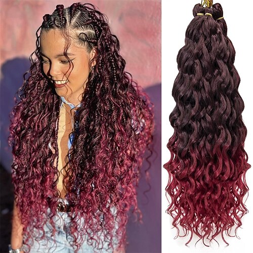 Capelli ricci e ondulati all'uncinetto, 24 pollici, per donne, con trecce hawaiane bordeaux, capelli sintetici, treccia bohémien all'uncinetto, extension per capelli all'uncinetto con onde d'acqua.