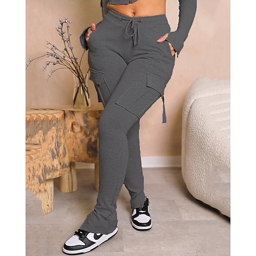 Per donna Pantaloni Cargo Chinos Streetwear Casual Lunghezza intera Vita media Semplice Tasca Elastico in vita Confortevole Elasticizzato All'aperto Vacanza Quotidiano Grigio Nero Rosa Primavera