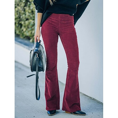 Per donna Pantaloni a Zampa Moda Streetwear Casual Lunghezza intera Vita Alta Semplice Tasca Fascia Elastica Comodo Comodità Morbido Elasticizzato All'aperto Streetwear Nero Rosa Rosso Marrone