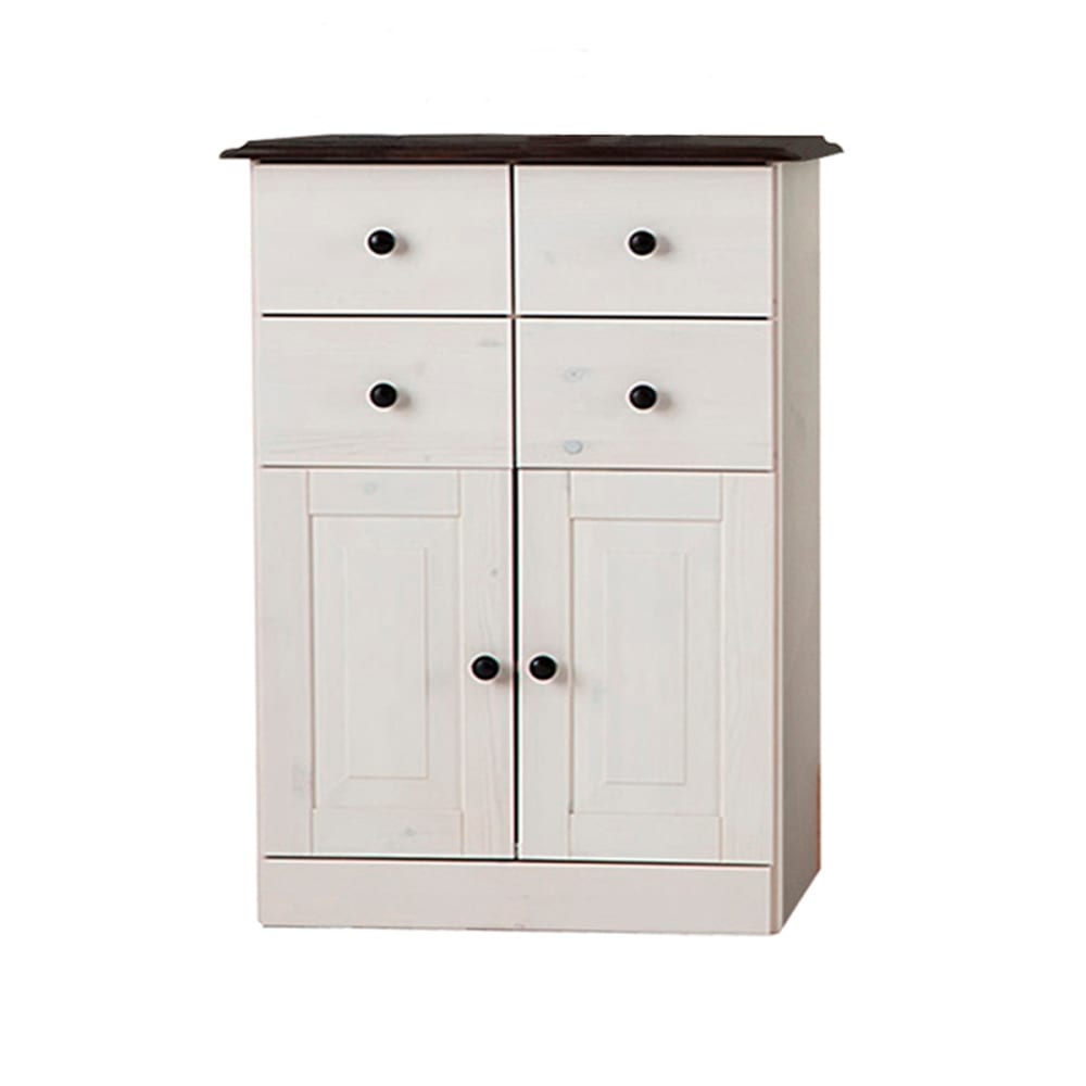 Meuble de salle de bain avec 2 portes 4 tiroirs en pin blanc laqué