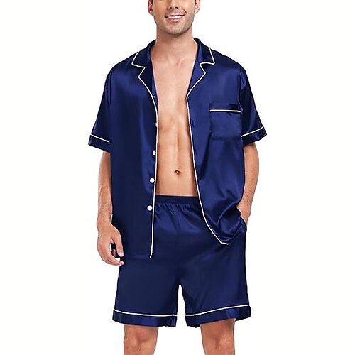 Per uomo Pigiami Abito di seta Set pigiama Pantaloncini del pigiama 1 set Liscio Di tendenza Moda Classico Interni Giornaliero Da letto Poliestere Comfort Morbido Bavero Manica lunga Pantaloncini