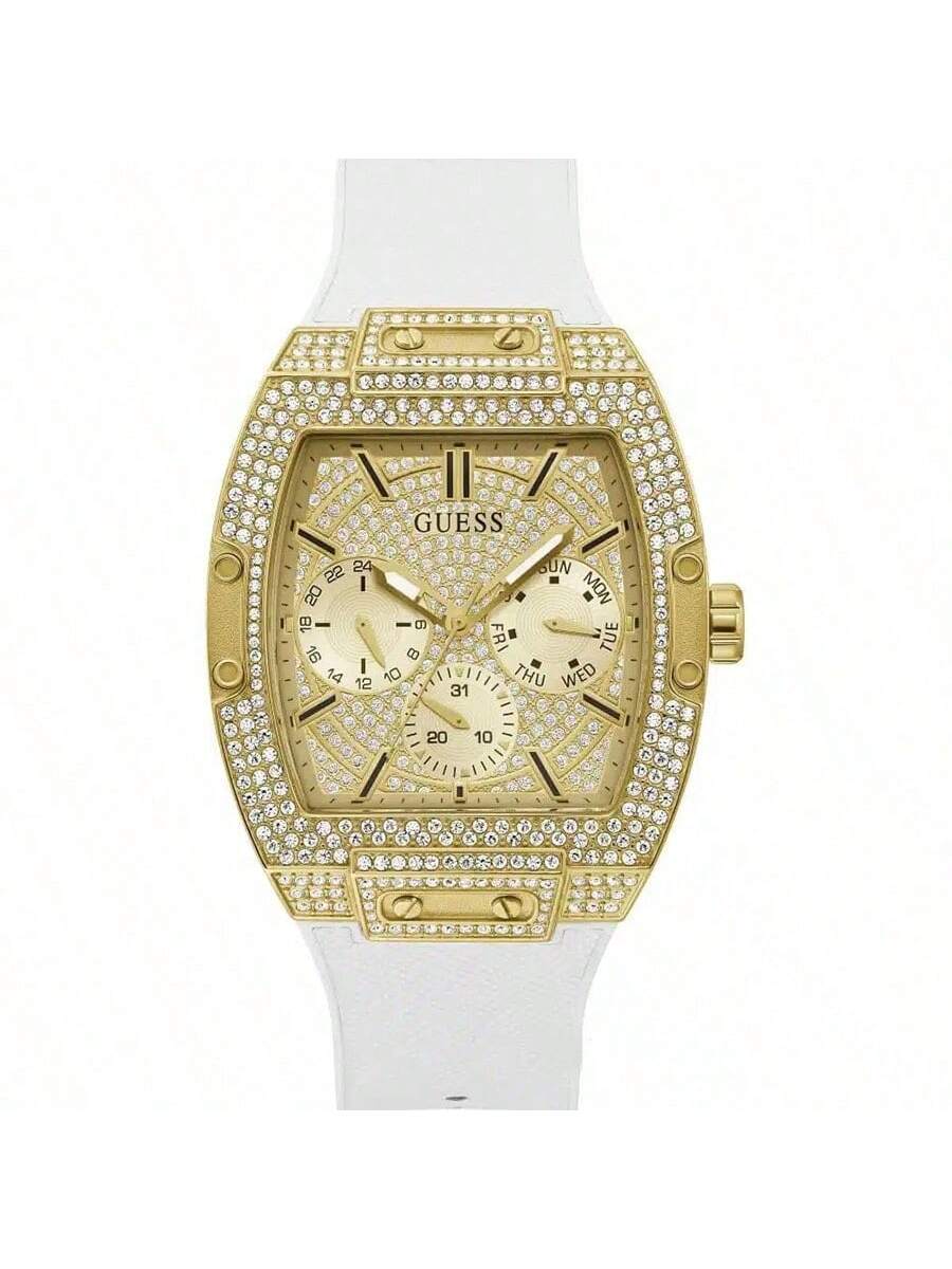 Guess Phoenix Multifunctioneel Kwarts Gouden Wijzerplaat Witte Siliconen Band Horloge Voor Mannen - GW0048G3 goud