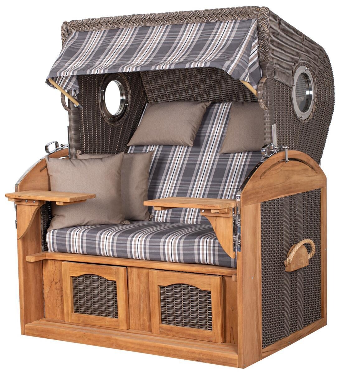 Mr. Deko Strandkorb Komplettset - bene living - Ammersee Teak - PE grau - Modell 504 - inkl. Liftersystem