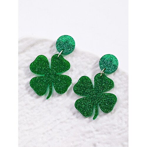 orecchini pendenti in acrilico a forma di trifoglio per il giorno di San Patrizio da donna, orecchini pendenti leggeri a forma di trifoglio glitterato, gioielli verdi irlandesi multi-stile per donna, perfetti per sfilate natalizie, feste e...