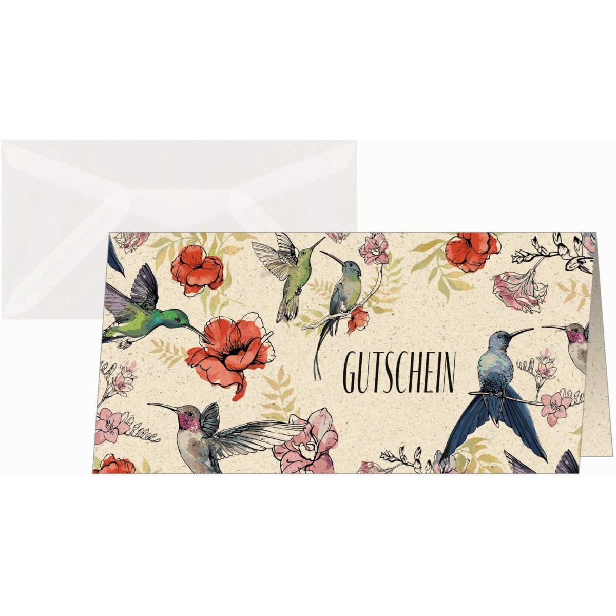Sigel Gutscheinkarte DL 240g Graskarton Hummingbirds and flowers 10+10 Stück