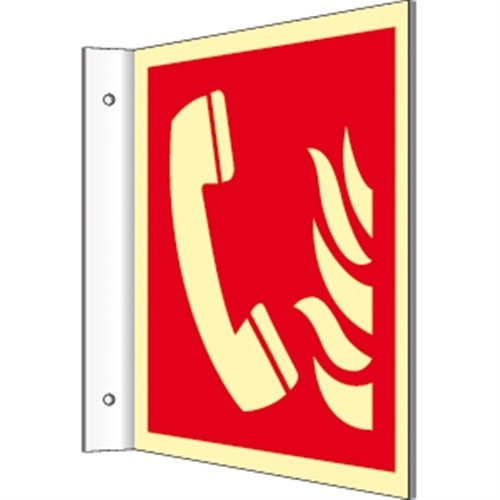 Fahnenschild Brandmeldetelefon ISO 7010, Kunststoff, nachl., 160-mcd, 200x200 mm