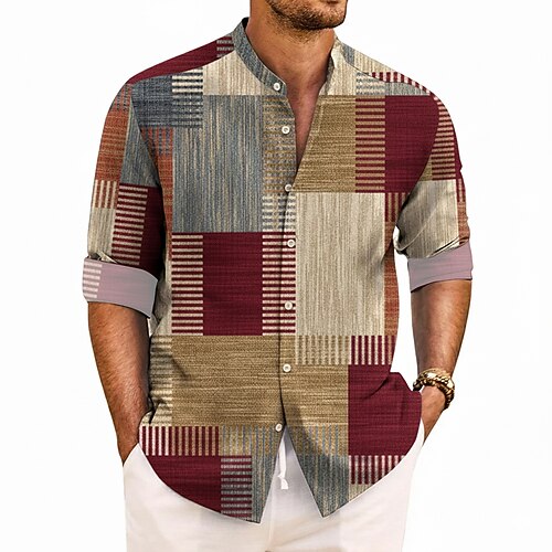 Per uomo Geometrico Blocco di colori Patchwork Camicia Camicia con colletto alla coreana Manica Lunga Moda Casual Abbigliamento Quotidiano Ferie Primavera Autunno Collo alla coreana Colletto alla