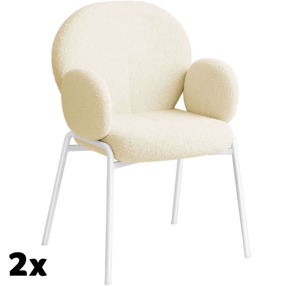 Set di 2 sedie imbottite in tessuto bouclè crema