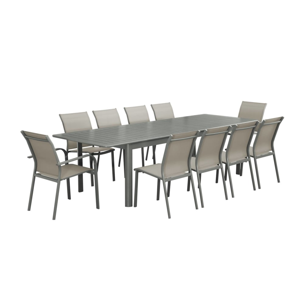 Set tavolo allungabile in alluminio con 10 sedie, verde kaki