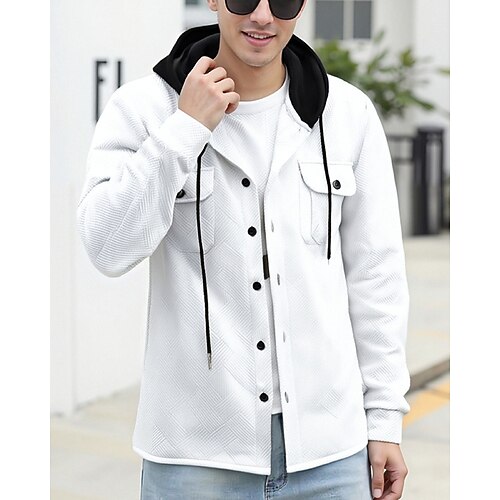 Per uomo Maglia Felpa a nido d'ape Maglione Felpa con cappuccio abbottonata Bianco Bavero Semplice Patchwork Testurizzato Casuale Quotidiano Sport Outdoor Streetwear Cool Abbigliamento Sportivo