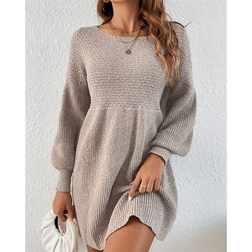 Per donna Mini Abito Abito in maglia Vestito Casual Elegante Moda Moderno Quotidiano All'aperto Spiaggia Vestibilità regolare Semplice Manica Lunga Girocollo Nero Grigio Primavera Autunno