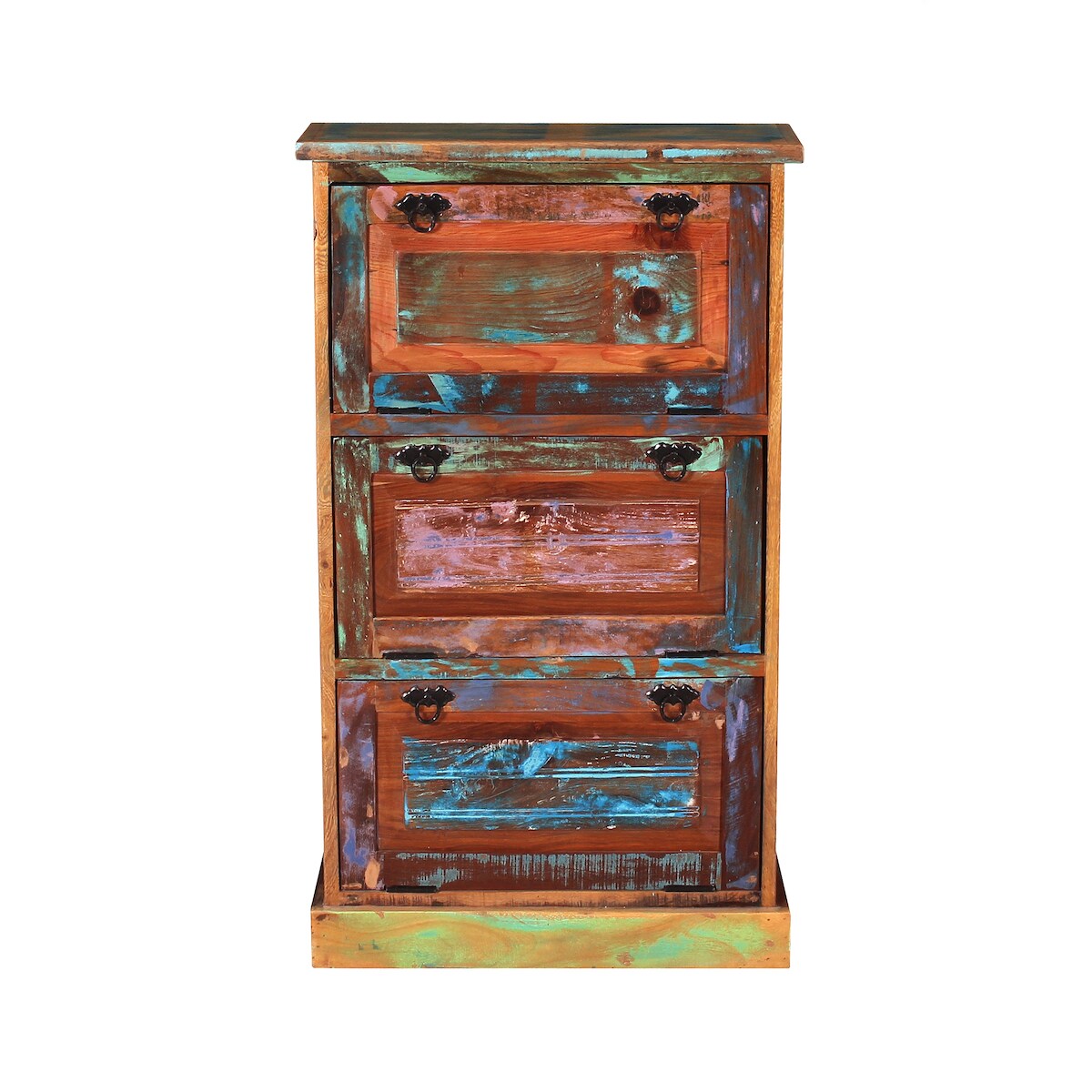 SIT Möbel Schuhschrank mit 3 Kippfächern | Altholz lackiert | bunt | B 65 x T 25 x H 110 cm | 09159-98 | Serie RIVERBOAT