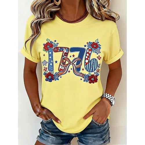 Giorno dell'Indipendenza Americana Per donna Maglietta Stampato Grafico Bandiera Lettera Elegante Classico Casual Manica Corta Girocollo Top lunghi Quotidiano Blu Giallo Rosa Verde Beige Estate