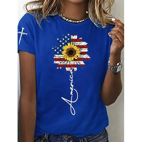 Maglietta Patriottica del Giorno dell'Indipendenza Maglietta Donna Grafica Bandiera Vintage Stile Casual Maniche Corte Collo Rotondo Top Regolari Stampa Giornaliera Weekend Blu Bianco Rosso Blu Reale