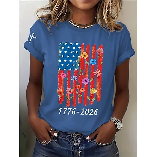 Maglietta patriottica per il Giorno dell'Indipendenza Americana 250° Anniversario Maglietta da donna Grafica Lettera Bandiera Nazionale Vintage Stile Classico Maniche corte Collo giro Collo rotondo