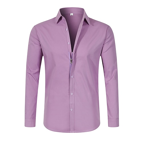 Per uomo Camicia Camicia elegante Camicia Oxford Camicia con Bottoni Semplice Matrimonio All'aperto Blu chiaro Nero Rosa Viola Manica Lunga Bavero Estate Primavera Abbigliamento Cerniera