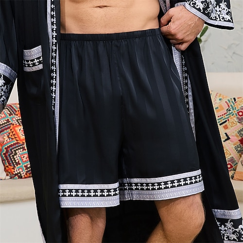 Per uomo Pigiama Vestaglia di seta Pigiami Set Pigiama 1 Set Stampe Grafiche Moda Elegante Classico Casa Quotidiano Da letto Poliestere Comodità Morbido Scollo a V Manica Lunga Cintura Inclusa
