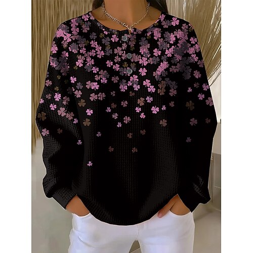 Felpa con cappuccio da donna per il giorno di San Patrizio con grafica floreale e trifoglio calda classica casual maniche lunghe collo rotondo top regolari casual strada stampa bottoni nera bianca