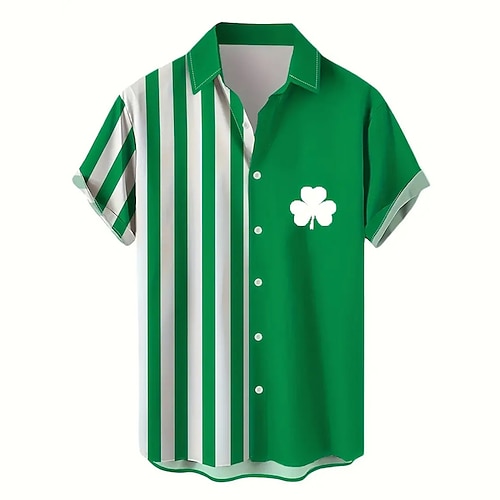 camicia casual da uomo a righe con quadrifoglio per il giorno di San Patrizio da indossare ogni giorno per uscire nel fine settimana autunno/autunno couverture maniche corte nero, bianco, verde s, m,