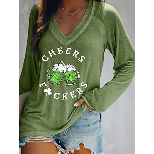 Maglietta da donna St. Patrick grafica piante elegante alla moda classica a maniche lunghe scollo a V top regolari per uscire quotidianamente fine settimana stampa blu nera verde primavera autunno
